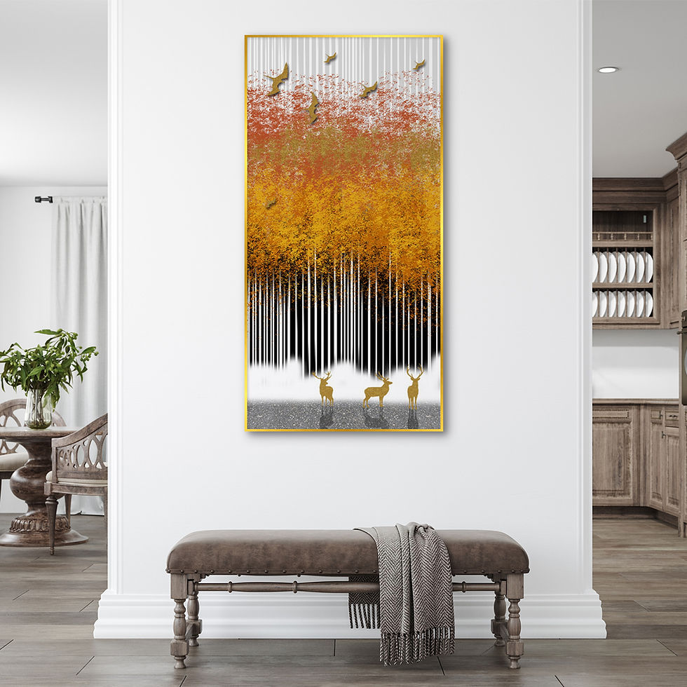 A solid mountain behind you gives you support and protection and helps to get your work and efforts recognized. This mountain holds a massive cache of gold signifying immense success accompanied by rich rewards. The orange-yellow combination in this painting makes it most beneficial in the southwest, northeast and central grids of the office.